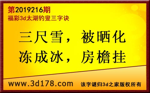 3d第19216期太湖字谜:三尺雪,被晒化,冻成冰,房檐挂