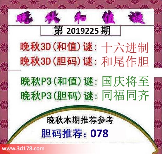 晚秋p3(和值)谜:国庆将至