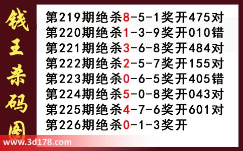 近期3d钱王杀码具体详情: