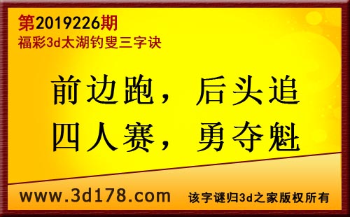 3d第19226期太湖字谜:前边跑,后头追,四人赛,勇夺魁