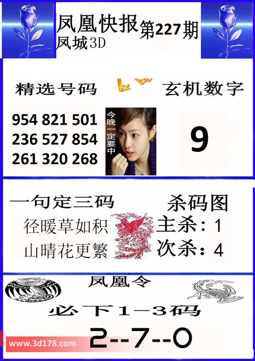 福彩3d凤凰快报图第19227期精选号码推荐: