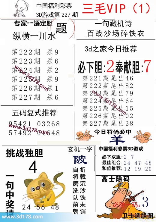 3d第2019227期三毛VIP详解:
