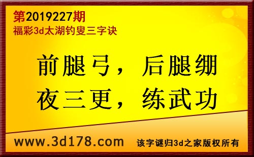 3d第19227期太湖字谜:前腿弓,后腿绷,夜三更,练武功