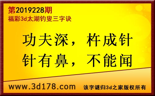 3d第19228期太湖字谜:功夫深,杵成针,针有鼻,不能闻