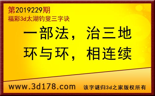 3d第19229期太湖字谜:一部法,治三地,环与环,相连续