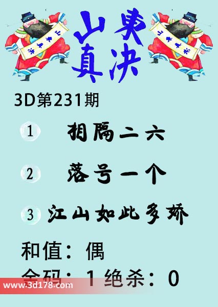 福彩3d第19231期山东真诀图如下所示: