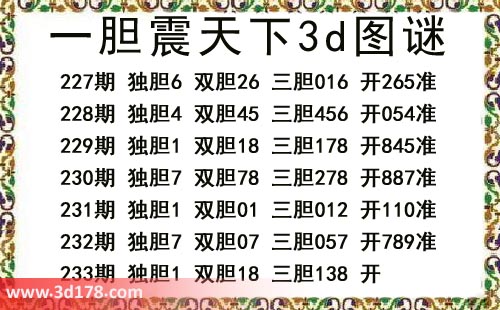一胆震天下三胆图库由3d之家3d图库频道原创,仅供彩民参考,温馨提供。
