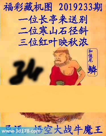 福彩3d第2019233期正版藏机图详解: