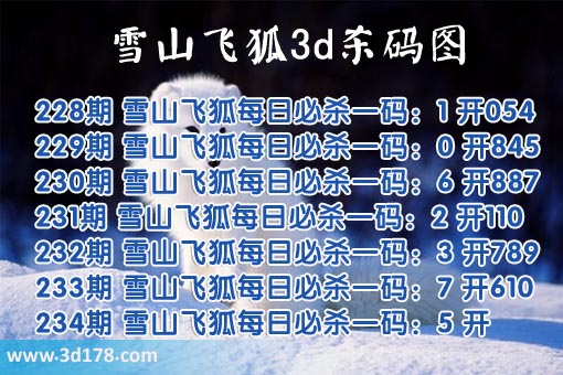 该雪山飞狐杀码图由3d之家3d图库频道原创,仅供彩民参考,温馨提供。