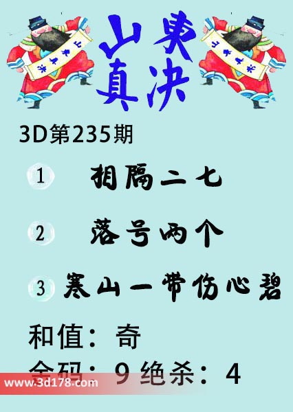 福彩3d第19235期山东真诀图如下所示: