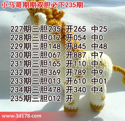 小马哥期期三胆必下235期推荐胆码:
