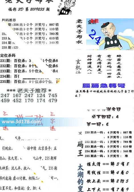 福彩3d第2019235期老夫子布衣图详情: