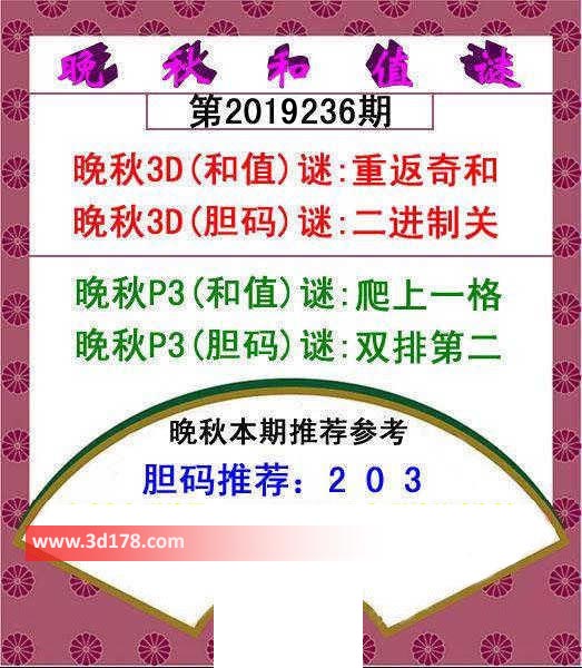晚秋p3(和值)谜:爬上一格