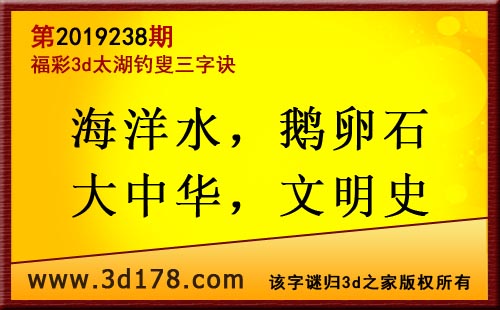 3d第19238期太湖字谜:海洋水,鹅卵石,大中华,文明史