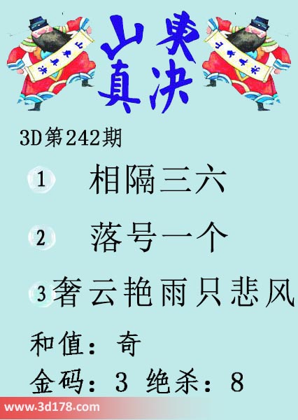 福彩3d第19242期山东真诀图如下所示:
