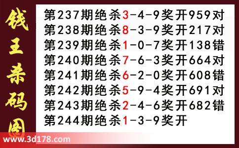 近期3d钱王杀码具体详情: