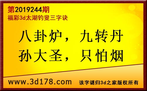 3d第19244期太湖字谜:八卦炉,九转丹,孙大圣,只怕烟