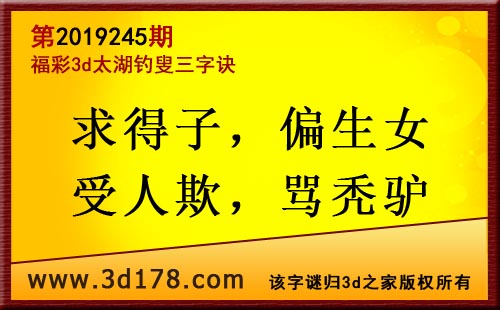 3d第19245期太湖字谜:求得子,偏生女,受人欺,骂秃驴