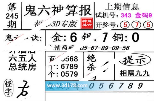 3d第19245期鬼六神算报为您推荐鬼六口诀: