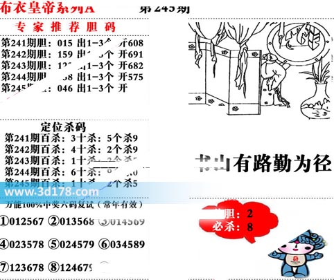 福彩3d第2019245期布衣皇帝A版布衣专家独家推荐: