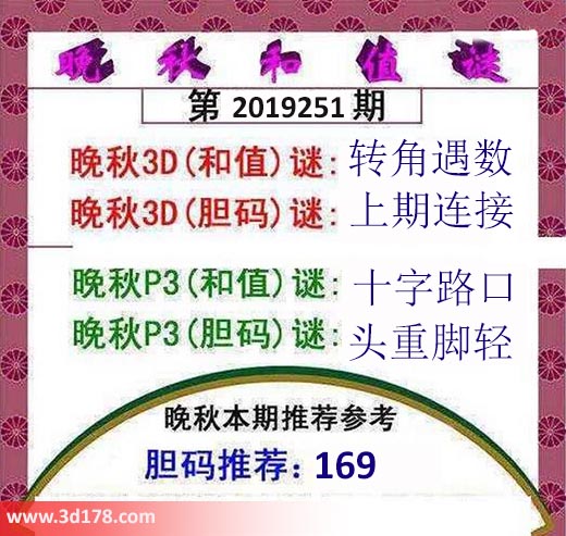 晚秋p3(和值)谜:十字路口