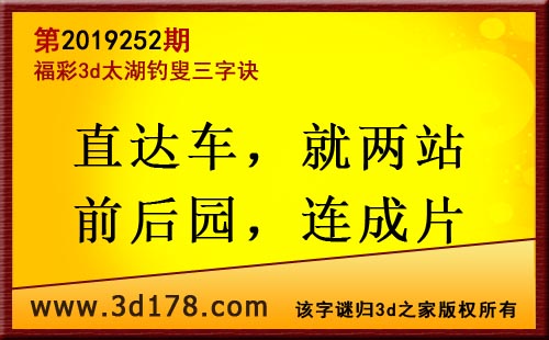 3d第19252期太湖字谜:直达车,就两站,前后园,连成片