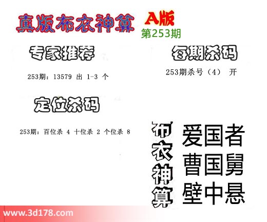 3d之家布衣图库之布衣神算图第2019253期详解: