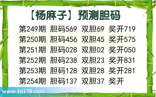 杨麻子胆254期杨麻子胆码推荐: