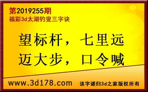 3d第19255期太湖字谜:望标杆,七里远,迈大步,口令喊