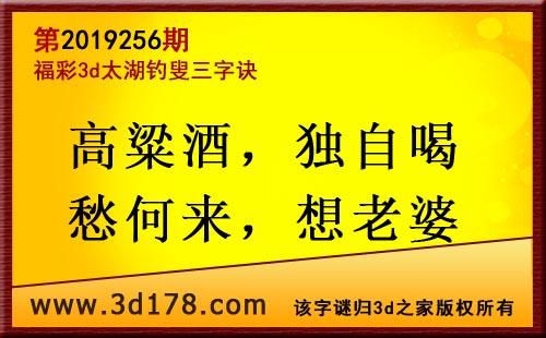 3d第19256期太湖字谜:高粱酒,独自喝,愁何来,想老婆