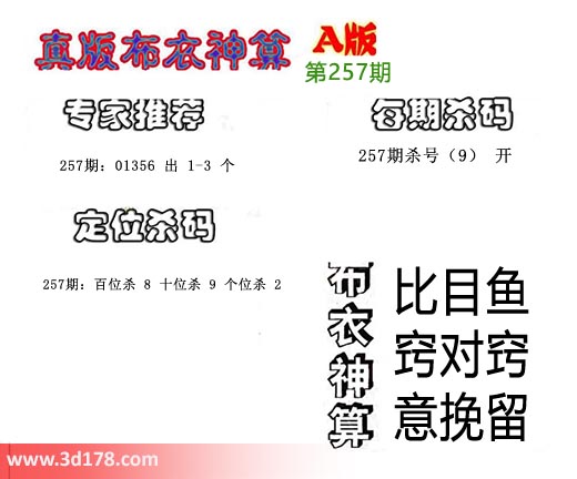 3d之家布衣图库之布衣神算图第2019257期详解: