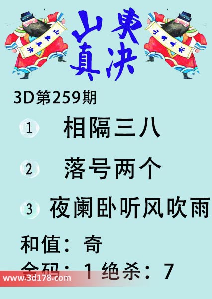 福彩3d第19259期山东真诀图如下所示: