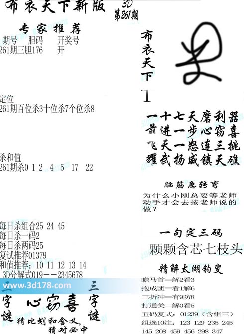 福彩3d第2019261期福彩3d布衣天下新版: