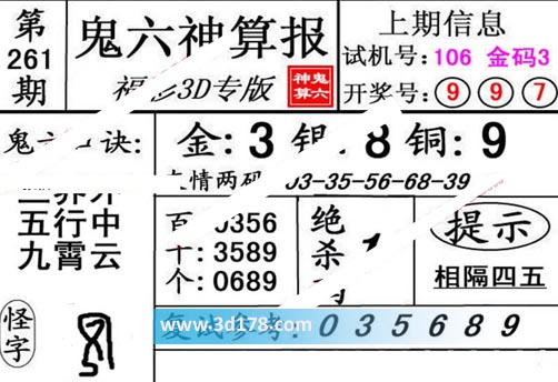 3d第19261期鬼六神算报为您推荐鬼六口诀: