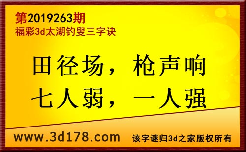 3d第19263期太湖字谜:田径场,枪声响,七人弱,一人强