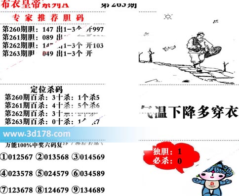 福彩3d第2019263期布衣皇帝A版布衣专家独家推荐:
