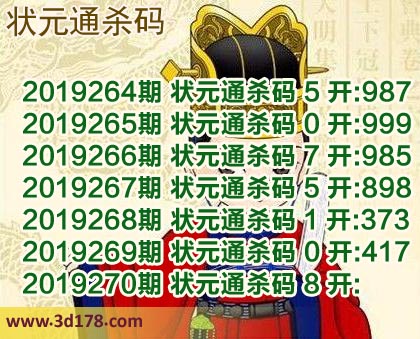 第270期3d状元通杀码图杀一码推荐: