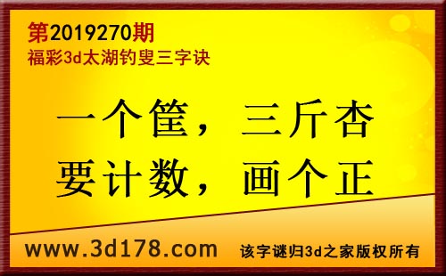 3d第19270期太湖字谜:一个筐,三斤杏,要计数,画个正