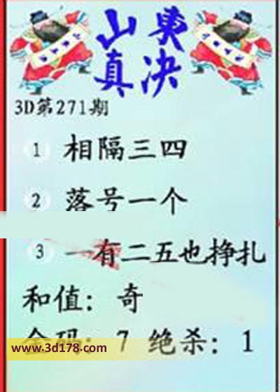 福彩3d第19271期山东真诀图如下所示: