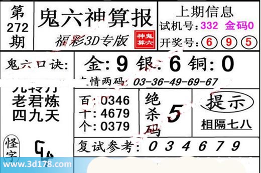 3d第19272期鬼六神算报为您推荐鬼六口诀: