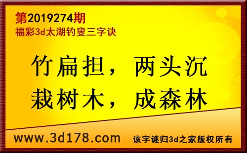 3d第19274期太湖字谜:竹扁担,两头沉,栽树木,成森林