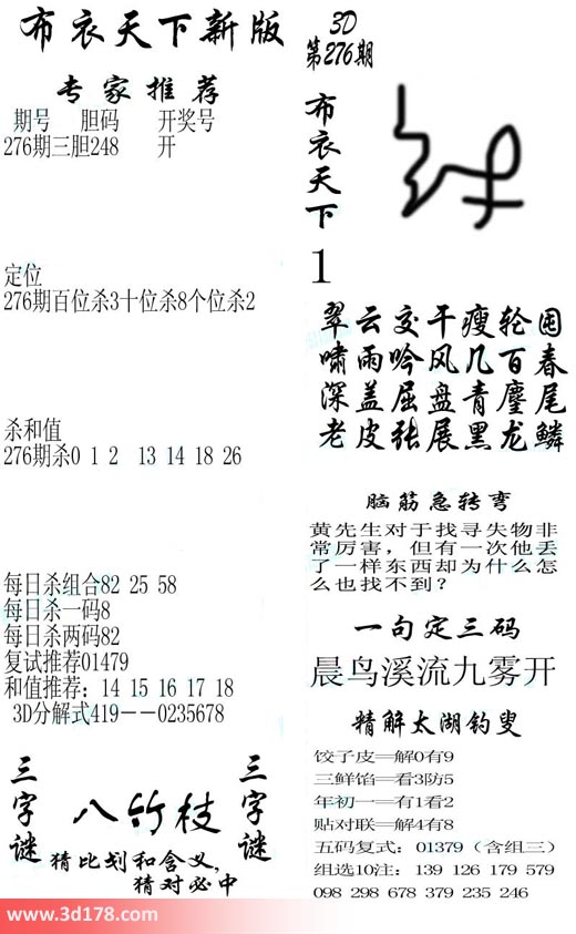 福彩3d第2019276期福彩3d布衣天下新版: