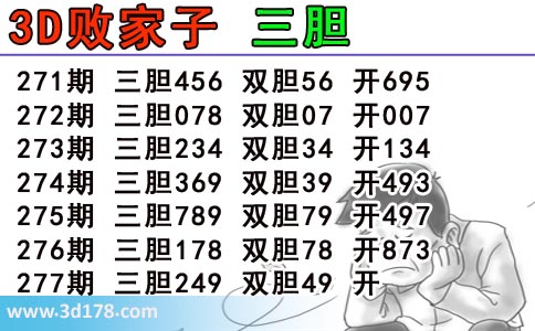 福彩3d第2019277期败家子胆码图: