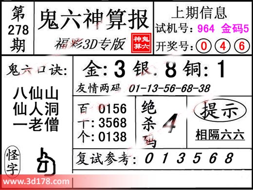 3d第19278期鬼六神算报为您推荐鬼六口诀: