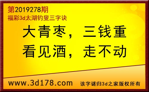 3d第19278期太湖字谜:大青枣,三钱重,看见酒,走不动