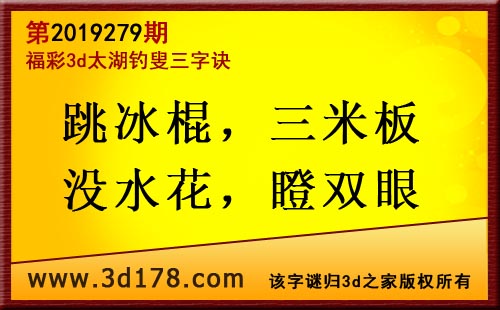 3d第19279期太湖字谜:跳冰棍,三米板,没水花,瞪双眼