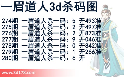 该一眉道人3d杀码图由3d之家3d图库频道原创,仅供彩民参考,温馨提供。