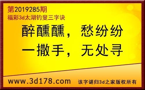 3d第19285期太湖字谜:醉醺醺,愁纷纷,一撒手,无处寻