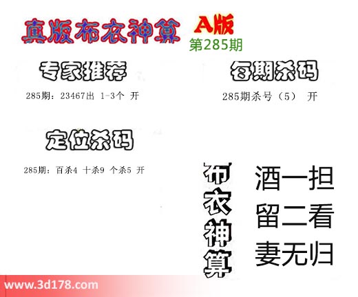 3d之家布衣图库之布衣神算图第2019285期详解: