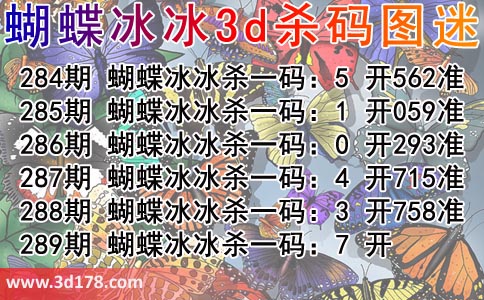 288期 蝴蝶冰冰杀一码:3 开758准